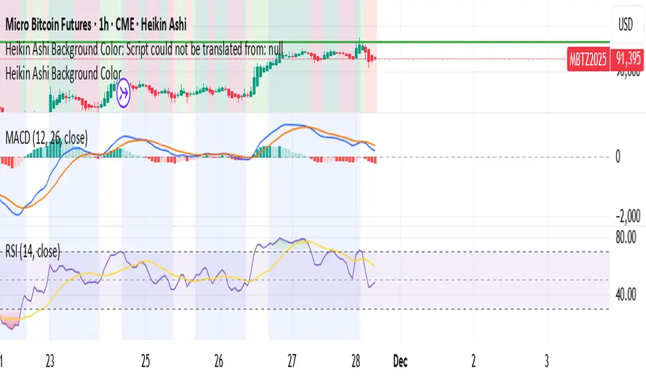 highlights the back ground candle with the corresponding heiken ashi candle colour