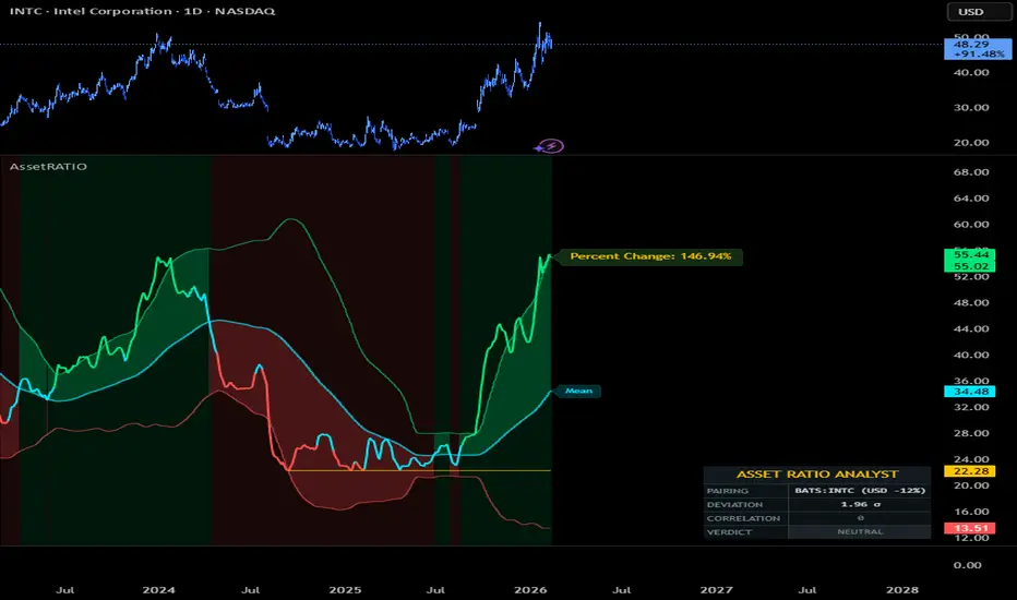 The indicator excels at identifying when one asset is trading at statistical