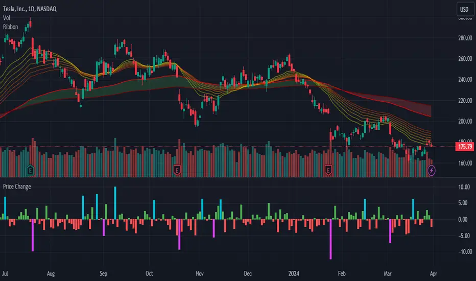 Display a histogram of price changes over a given interval. Show change as a percentage or in dollar amount. Highlight changes that exceed a particular value.