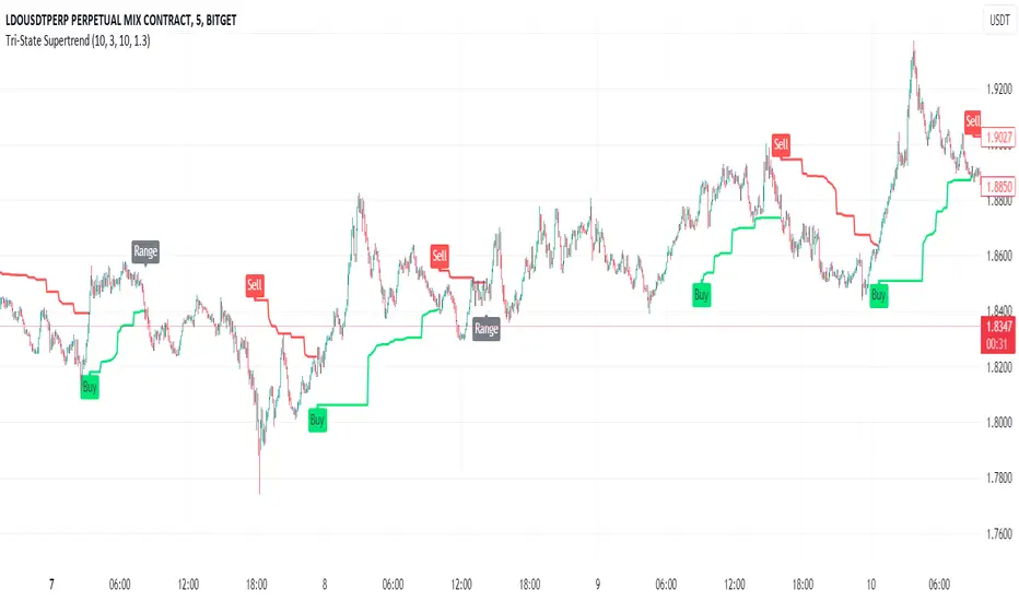 Tri-State Supertrend incorporates a range filter into a supertrend algorithm.