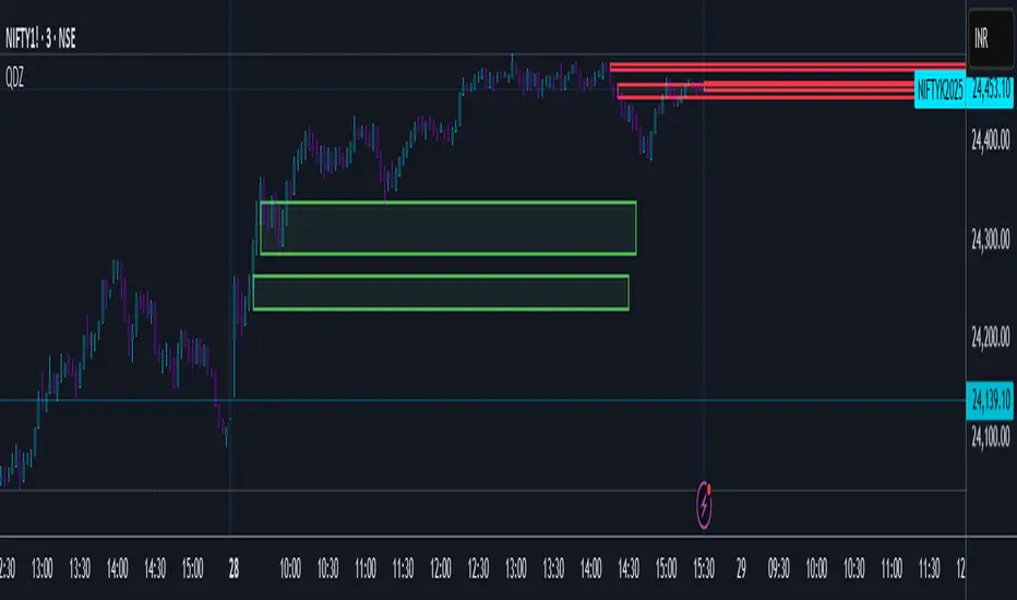The Quantum Delta Zones (QDZ) is a unique technical indicator designed to highlight high-probability order block zones in the market based on a combination of Delta Sensitivity, order block tightness, and volume-based filters.