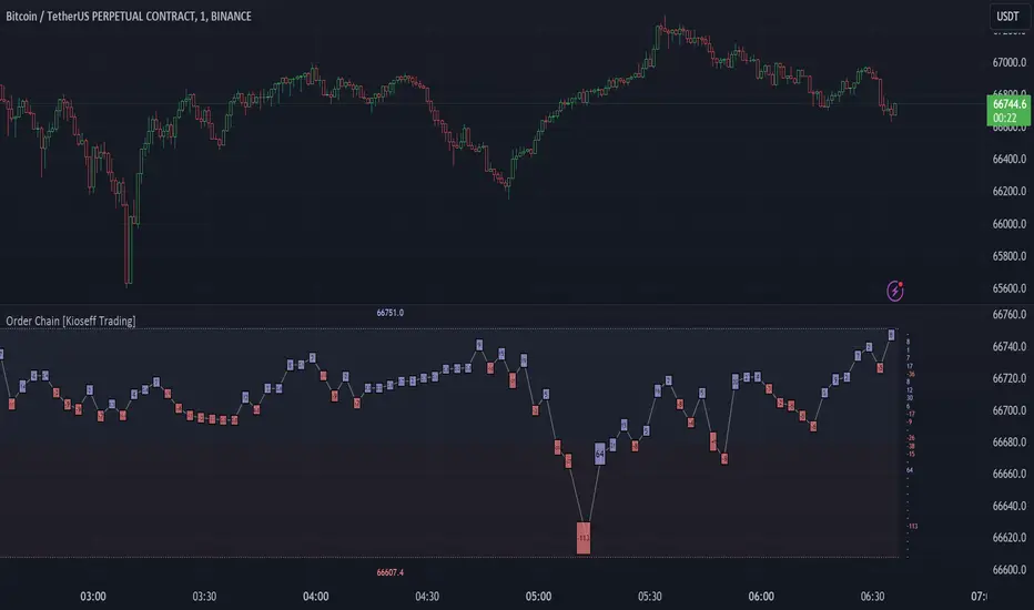 This filled order (or aggregates) is colored in congruence with price direction. The filled order is subsequently appended to its relevant tick level and added (buy order) or subtracted (sell order) from the CVD value at the identified tick level.