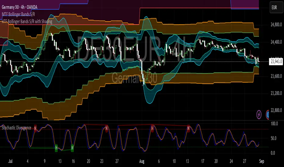 Mis à jour HTF Bollinger Bands S/R with Shading