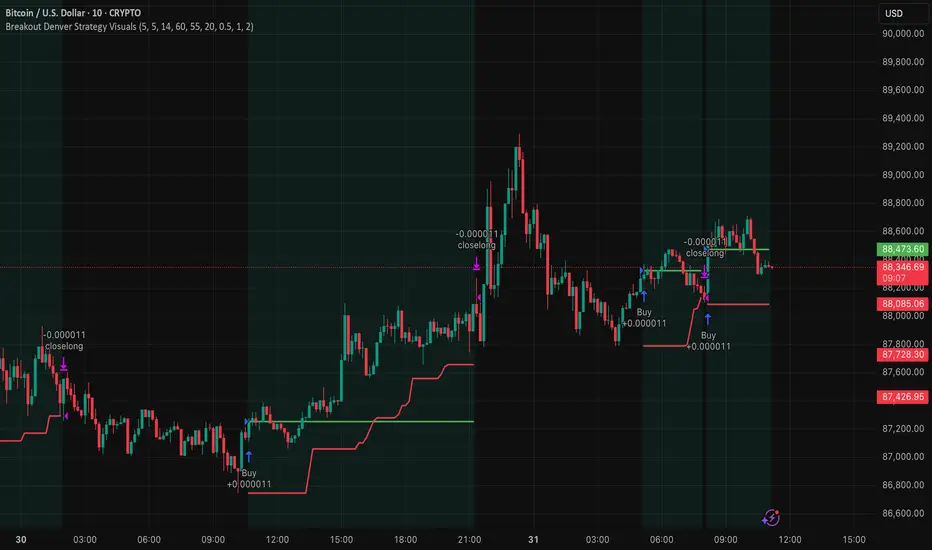 After years of research and development, I am proud to release the newest version of the Breakout Denver Strategy Visuals (BDS). For various reasons, I cannot disclose the source code of this script. However, if anyone is interested in collaborating on its further development, please feel free to contact me via the Telegram link in my bio.