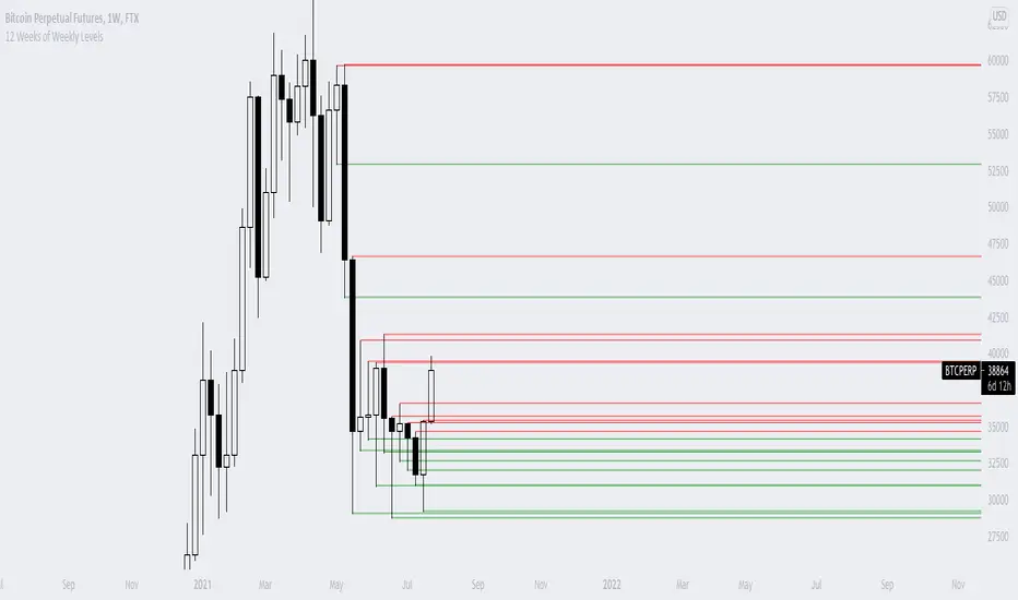A very simple indicator, which basically looks back on the past 12 weeks at 8PM EST and finds the highs and the lows. Once it finds those levels, it draws them as horizontal rays on the chart. The lows are drawn in green (to indicate previous buy zones) and the highs in red (to indicate previous sell zones). No user inputs are required