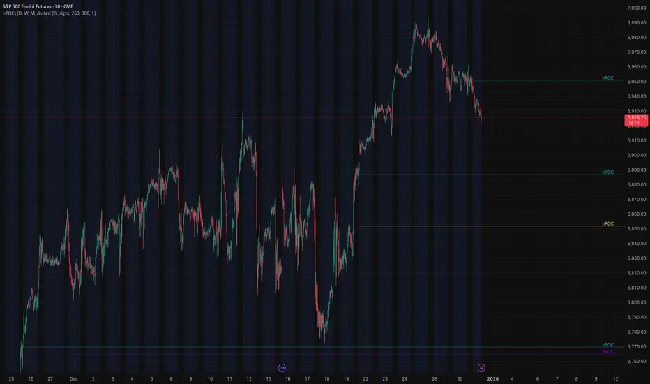 Discover the hidden magnets of the market with nPOC Levels, a premium TradingView indicator that automatically detects and plots Naked Points of Control (nPOC) from previous Daily, Weekly, and Monthly periods. These untouched volume-based levels—where the highest trading activity occurred in a prior period but price has not yet revisited—act as powerful attractors, often serving as strong support/resistance zones or high-probability price targets that draw the market back with significant momentum.