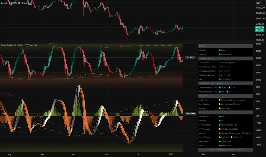 Traditional momentum indicators often behave inconsistently across assets, rely on fixed thresholds, or produce isolated signals with little context. Ghost Shadow addresses this by normalizing momentum behavior and synchronizing all momentum-related analysis into one adaptive framework driven by shared internal logic.