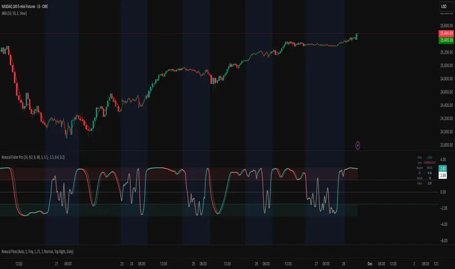 I built this because I got tired of indicators that looked good in marketing but fell apart in live trading. The standard Fisher Transform has real value but the standard implementation has real problems. This version solves those problems using math that actually makes sense.