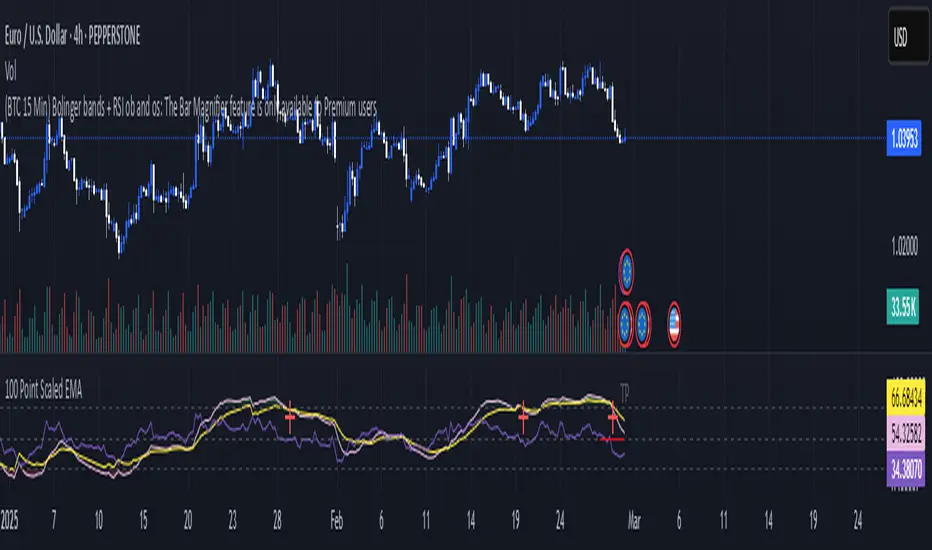 This technical approach makes the 100 Point Scaled EMA a powerful tool for traders, offering a simple unique and standardized perspective on market trends.