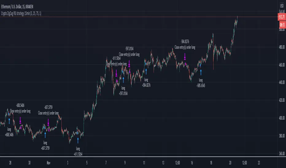 Crypto ZigZag RSI strategy 15min