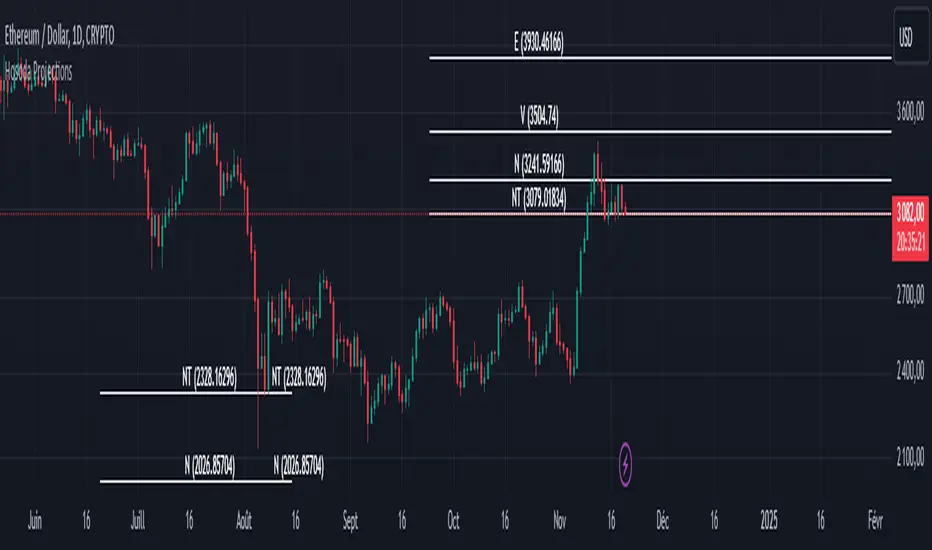 This script, written in Pine Script v5, introduces a technical analysis tool called "Hosoda Projections." Inspired by Ichimoku Kinkō Hyō and wave-based forecasting methods, this indicator helps traders visualize potential future price levels using a combination of pivot detection and projected price movements. It offers a unique way to anticipate market dynamics and define potential targets, making it particularly useful for those who seek to combine historical price patterns with forward-looking strategies.