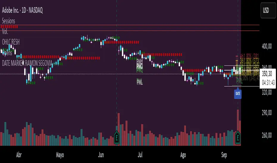The Date Marker (resh) is a simple tool to mark multiple custom dates directly on your chart.