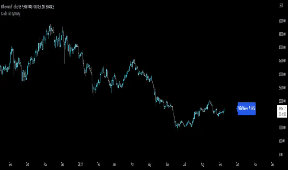 This indicator basically calculates the MOVE in percentage and shows the OHLC of candle in a label.