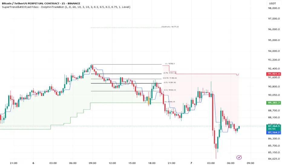 The indicator simply performs its calculations by using two multitimeframe SuperTrend indicators, Fibonacci levels, and pivot points. The reason for using MTF in both SuperTrend indicators is that the lengths of the levels are relatively limited, so it allows for a more detailed analysis on lower timeframes.