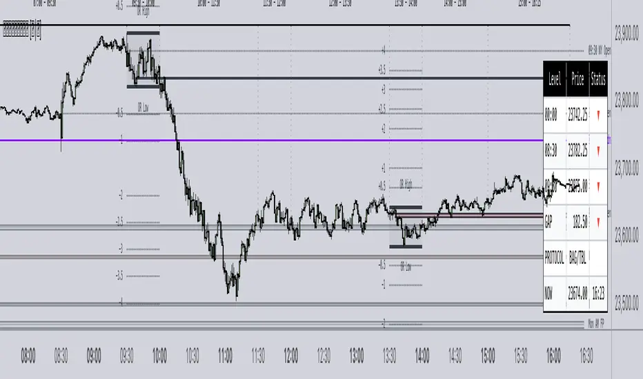 Opening Ranges: This feature allows you to visualize the Opening Range of the AM and PM sessions, along with their respective projections. You can also choose whether to extend these ranges over time or keep them limited to their formation period.
