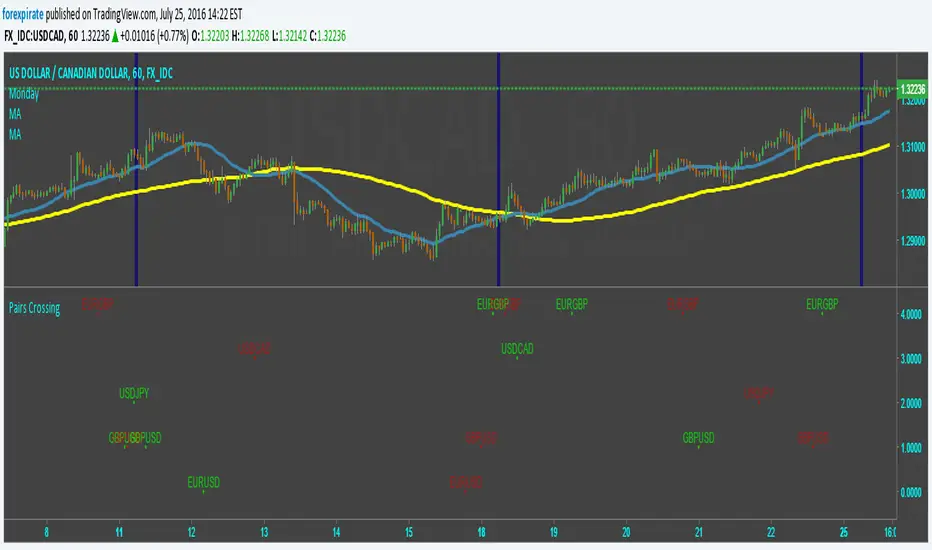Indicator shows when a pair's SMAs cross-above or cross-under. You pick the pairs by changing the s#-corresponding to the p# matching the pair you want. The other variable numbers are out of order but it doesn't matter expect to the look of the script.