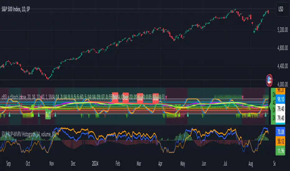 The Gabriel's Relative Unrealized Profit with Dynamic MVRV Histogram is an advanced trading indicator designed to offer in-depth insights into asset profitability and market valuation. By integrating Relative Unrealized Profit (RUP) and the Market Value to Realized Value (MVRV) Ratio, this indicator provides a nuanced view of an asset's performance and potential trading signals.