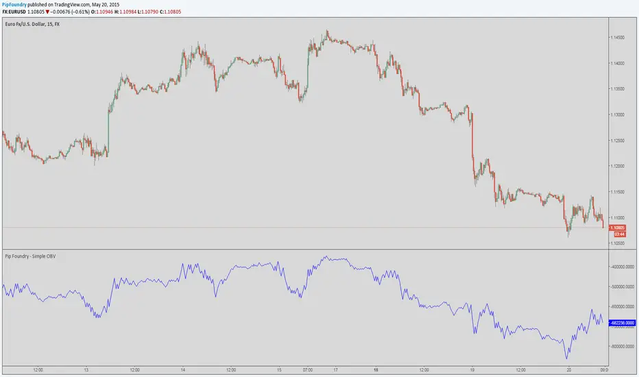 The concept: A simple OBV that will display the volume of a security other than what you are charting.