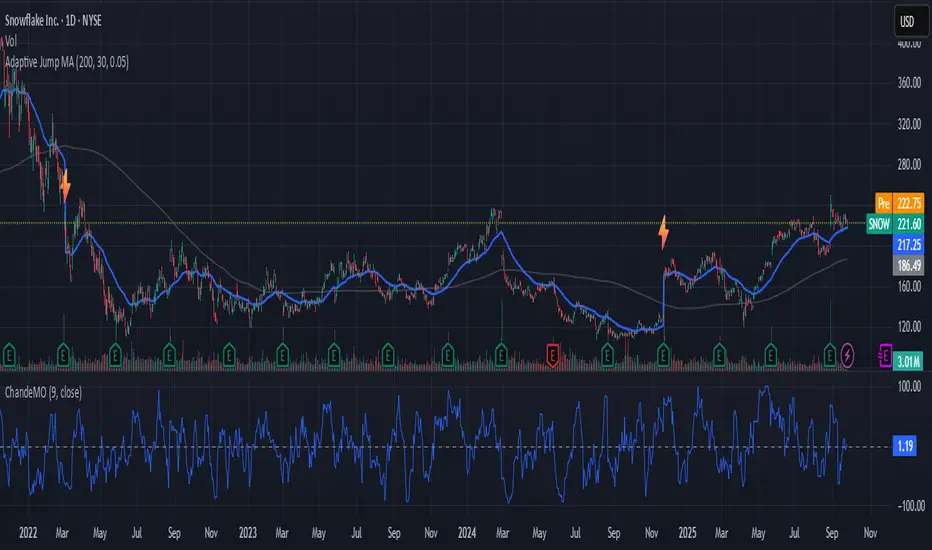 This indicator solves the classic moving average lag problem during significant price moves. Traditional MAs (like the 200-day) take forever to catch up after a major drop or rally because they average across all historical periods equally.