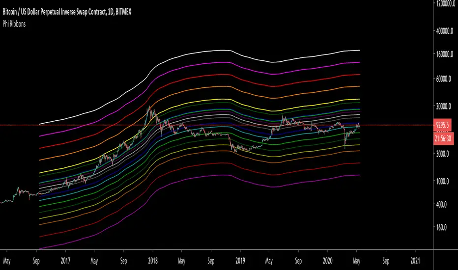 I call this "Phi Ribbons." The Golden Ratio, also known as Phi, is fantastic at predicting areas of price reversal.
