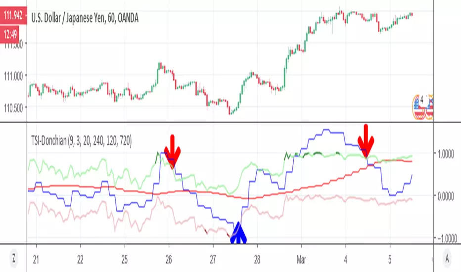 Here it a TSI with MTF function , together with Donchian high and low channel