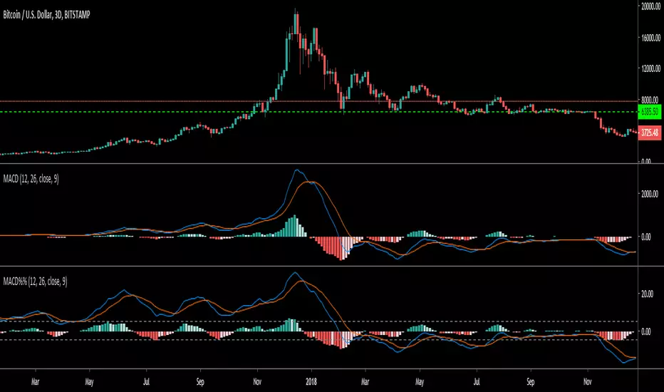 Just the macd not using the raw difference between the 12 and 26 ema for the macd. Instead It calculates the difference in %. Histogram and signal are also derived from the macd line. Also added 2 horizontal lines, you can modify.