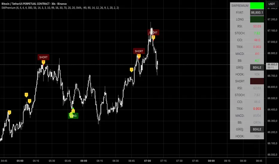 Green/Red Arrows: Indicates a confirmed "Long" or "Short" entry signal.