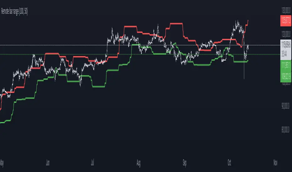 Shows the price range for a certain period of bars back. For example, the range between 100 bars back and 50 bars back. The last 50 bars are not counted in this case.