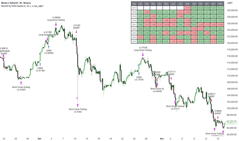 RevertX is a sophisticated mean-reversion trading system designed specifically for Bitcoin and cryptocurrency markets. Built on advanced statistical analysis, this strategy identifies extreme price deviations and capitalizes on market equilibrium forces.