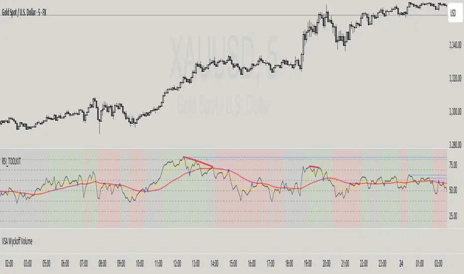 This indicator combines several technical analysis tools to give traders a comprehensive view based on the RSI indicator. Its main features include:
