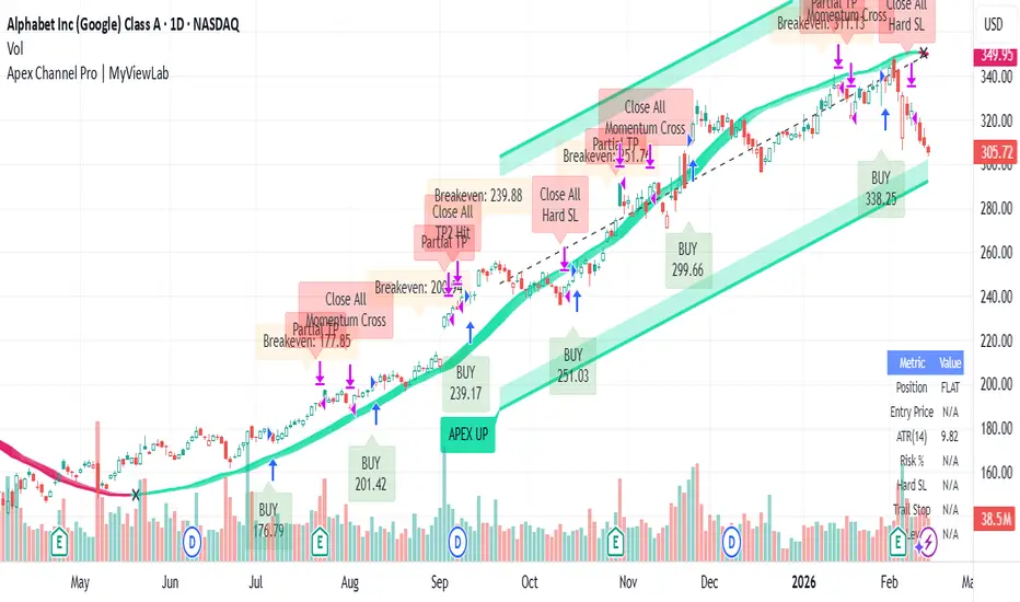 The Apex Channel Pro [Full Strategy] is the institutional-grade evolution of our free Lite indicator. While the Lite version helps you visualize the trend, this Full Strategy is designed to manage the entire lifecycle of the trade—from precise entry to profitable exit.