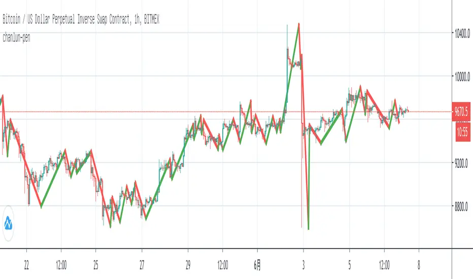 缠论分笔.当你看到红色线段时,说明下跌的一笔已经完成(下跌趋势结束),同时是上涨的一笔开始(上涨趋势开始)