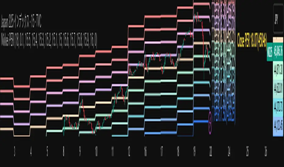 This indicator visualizes the PER levels of the Nikkei 225 based on the dates and EPS data entered in the text area.