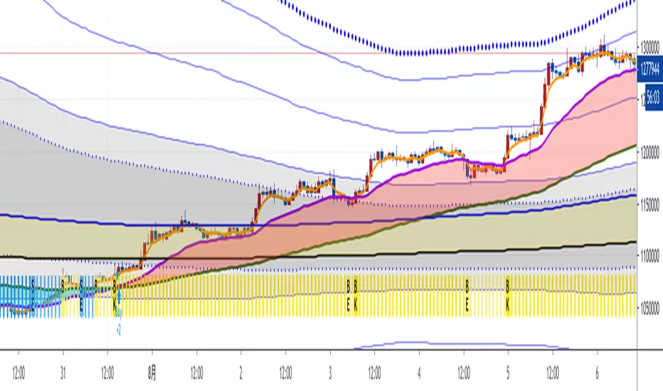○ Bolinger bands generally display six of ±1σ, ±2σ and ±3σ, but in this indicator, two are inside ±1σ and two are outside ±3σ.