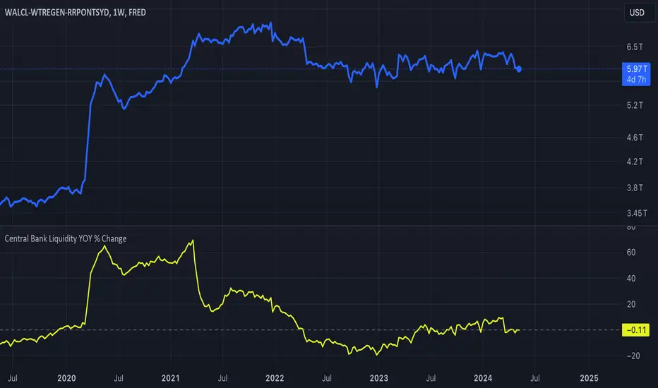 This shows the percent change from a year ago (YOY%) in Central Bank Liquidity