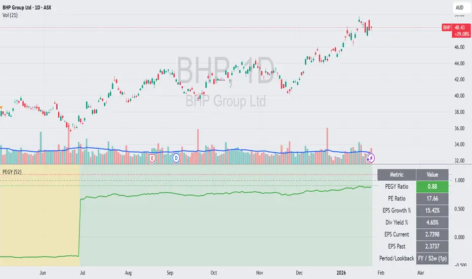 PEGY (Price/Earnings Growth% and Dividend Yield) is a straightforward modification of the PEG ratio that adds dividend yield to the growth term so that mature, dividend paying companies aren’t penalized by low growth rates alone. The formula is typically written as: