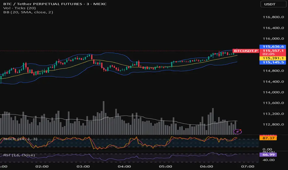 This is a copy of the build-in indicator, but as addition, it shows the distance between upper and lower band in percentage.Script open-source