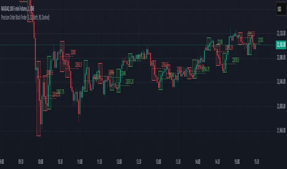 The indicator identifies potential Order Blocks by locating a trigger candle (bearish for bullish patterns, bullish for bearish patterns) followed by your specified number of confirmation candles in the opposite direction. This multi-candle confirmation approach helps filter out false signals and focuses on the most reliable trading opportunities.