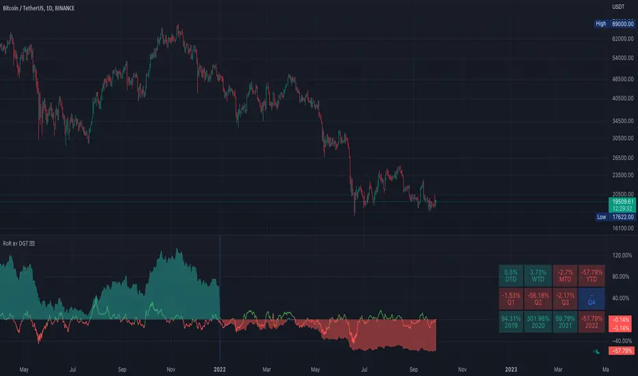 This update introduces an experimental application of feedback concept common in Electronic Engineering, attempting to present additional value/insight to the Indicator Rate of Return. RoR, as explained above is a measure of net gain/loss of an financial instrument over a specified period of time, also sometimes called the basic growth rate, or alternatively, return on investment (ROI). Mathematically you may consider RoR same as a Momentum (MOM) or Rate of Change (ROC) Indicator and benefit from their trading concepts.Feedback concept in Electronic Engineering