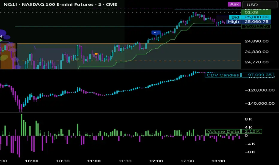 | **CVD** | Cumulative Volume Delta for session |