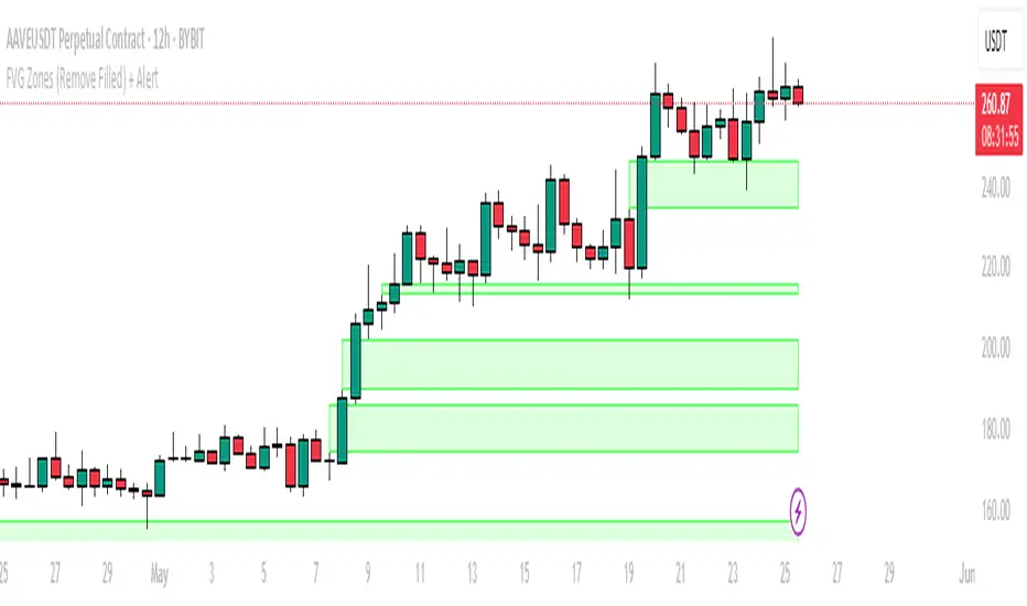 A powerful TradingView indicator that automatically identifies Fair Value Gap (FVG) zones, removes them once price “fills” the gap, and sends you crystal-clear alerts specifying Bull or Bear zones—so you never miss a market imbalance.
