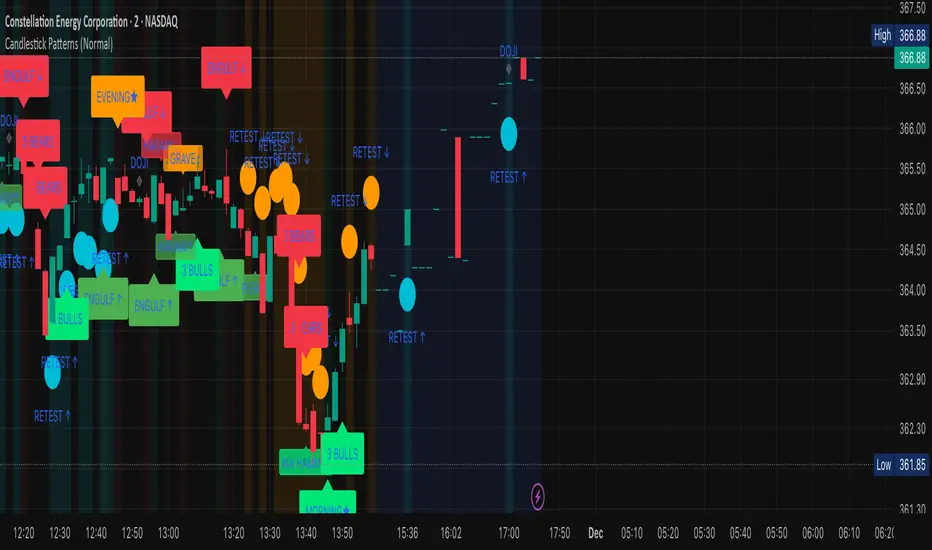 🔴 Bearish patterns (Shooting Star, Engulfing ↓, Evening Star, etc.)