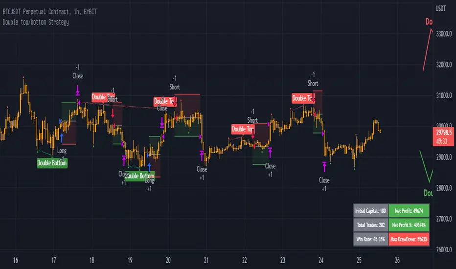 In this strategy, I use Pivot High/Low to find Double top and bottom.