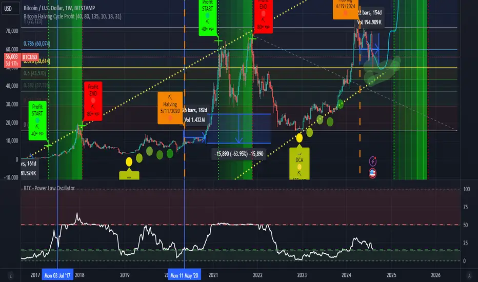 Deviation Analysis: The Power Law Oscillator measures the percentage deviation of Bitcoin's closing price from the model price. This deviation is expressed as a percentage to illustrate how far the current price is from the expected model trajectory.