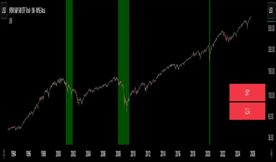 The US Recession Indicator is designed to identify recessions as they happen, using two reputable indicators that have accurately foreseen all past recessions since 1969. Unlike the National Bureau of Economic Research (NBER) which determines recession dates after the fact, this indicator seeks to spot recessions in real-time. When both of these distinct metrics meet certain criteria, the chart's background becomes shaded, signifying a strong likelihood that the economy is in a recession. Furthermore, a built-in alert system keeps users updated without constant monitoring.