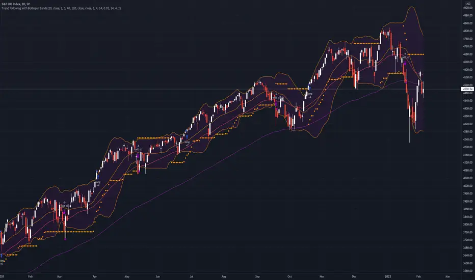 This is a trend following system which uses the Bollinger Bands instead of the Donchian Channels.