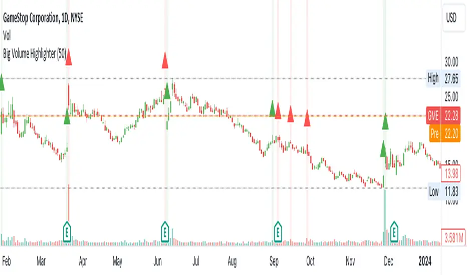 The "Big Volume Highlighter" is a powerful tool designed to help traders quickly identify candles with the highest trading volume over a specified period. This indicator not only highlights the most significant volume candles but also color-codes them based on the candle's direction—green for bullish (close > open) and red for bearish (close < open). Whether you're analyzing volume spikes or looking for key moments in price action, this indicator provides clear visual cues to enhance your trading decisions.