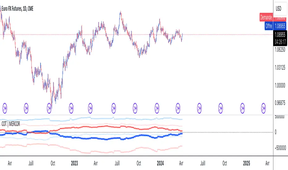 Indicator Declaration: The script begins by declaring a custom indicator using indicator() function, naming it "COT | MERCOR", and setting a short title and precision.