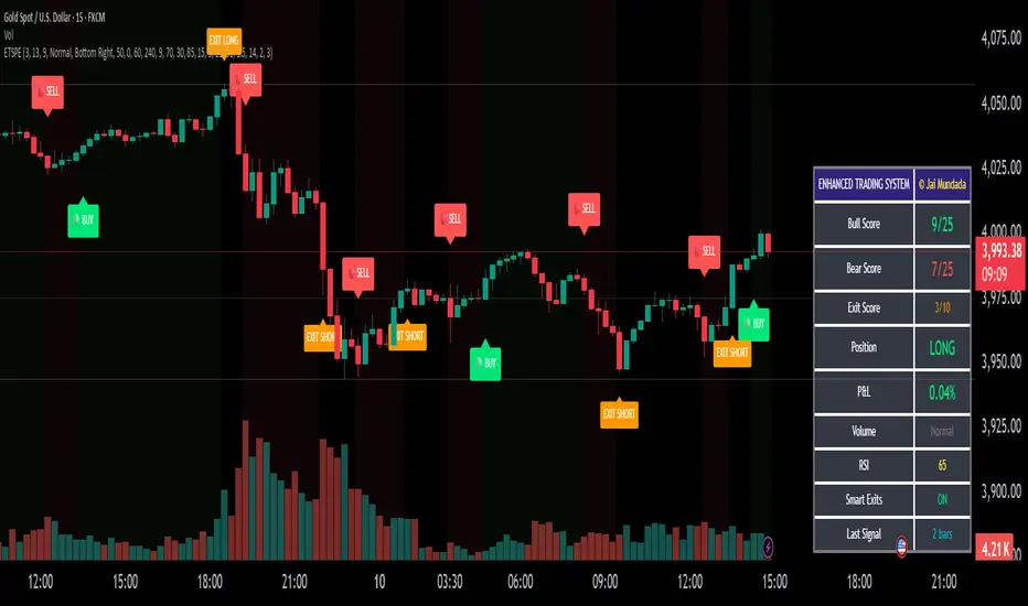 ETSPE (Enhanced Trading Signals with Perfect Exits) is a premium, high-precision indicator built to identify optimal entry and exit zones across all markets — including stocks, indices, forex, and crypto.