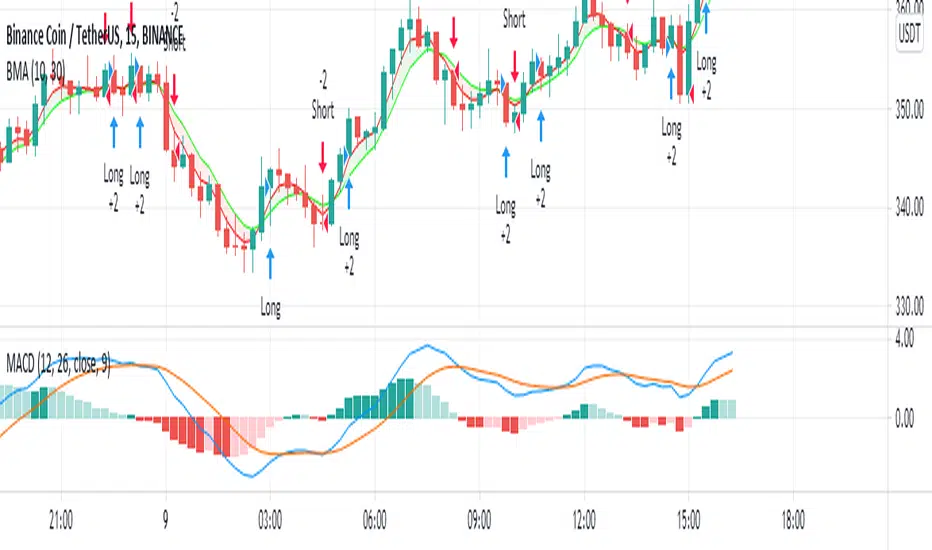 This Strategy uses the most known method(crossover and cross under two slow and fast MAs) with using BMAs.